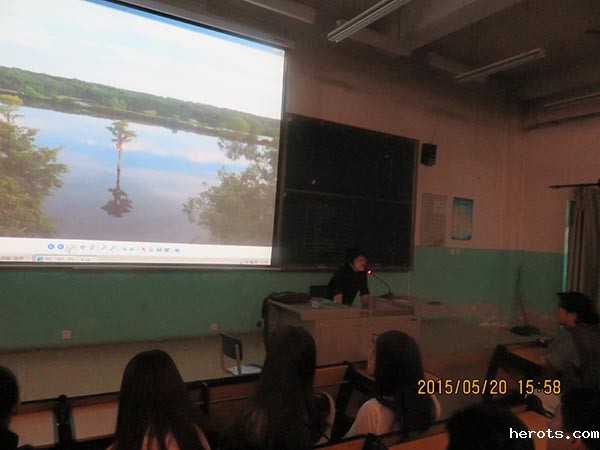 美术系杨宇翔老师结合图片视频介绍了在美国举办个人画展、讲学、写生和观摩博物馆的情况。讲座期间,美术系王旭老师和杨老师共同示范了讲座辩论的规范和技巧,激发了学生的提问热情,达到了分享与交流的效果。