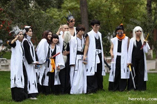 “慕斯凯麒动漫社”是一支主要由我院美术系学生组成的社团。为参加本届动博会, “慕斯凯麒动漫社”精心策划,认真编排,刻苦训练,于本学期初以Cosplay真人秀形式推出了一台动漫舞台剧——《死神》。该剧取材于时下最火热的三大动漫作品之一《死神》,经改编,最终成型。舞台剧分为两幕,第一幕讲的是死神之间的故事,男主角闯入尸魂界救助自己即将被处刑的朋友;第二幕讲的是死神与假面对峙,守护人类的安逸生活!经过种种磨难和惨烈的战斗,最后正义战胜邪恶!在舞台剧中,动漫社的同学们身着亲手制作的颠覆视觉的黑白服装,手持自己研制的武器装备,扮演各种人物,摆出各种造型,每招每式都精益求精,将剧中的各种有形和无形物质、各种思想情感、各种社会现象甚至抽象的概念以及剧中人物对现实和未来的乐观憧憬,都展现的一览无余。