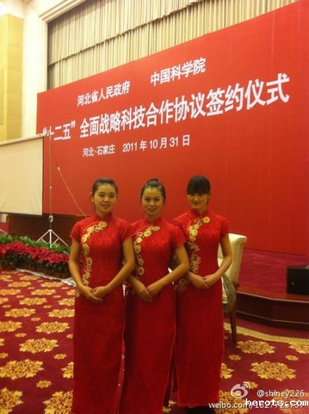 2011年10月31日上午10点,由河北省人民政府举办的“中国科学研究院科技合作座谈会暨‘十二五’全面战略科技合作”签约仪式在石家庄太行国宾馆贵宾楼一楼柏坡厅举行。文管系教师谷海燕带领2010级公关班学生冯庭苇、左岳苑、周丹、任冰、李秀伟和姚欣彤六名学生参加此次签约仪式,圆满完成了引领和助签任务。
