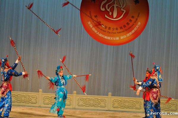 据了解,此次参赛,戏剧系师生备战半年之久,迎酷暑、战严寒,团结拼搏,夜以继日地加工排练参赛剧目(河北梆子《扈家庄》、《盗库银》,《穆桂英挂帅》、《吴汉杀妻》,《杜十娘》、《李慧娘》,《打神告庙》、《宝莲灯》;京剧《小牧牛》、《霸王别姬》、《起解》)。在比赛现场,师生充分发扬戏曲的“一颗菜”精神,以勇于吃苦耐劳、不服输的团队精神,杀出重围,赢得了地方戏高年级组金牌。