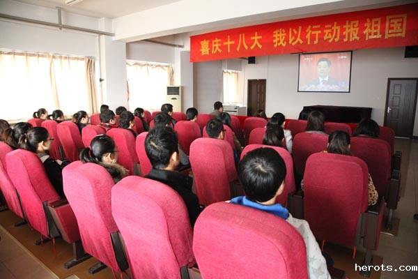 11月8日上午9:00,肩负全党的重托和全国人民的期盼,举世瞩目的中国共产党第十八次全国代表大会隆重开幕。18luck快乐彩通过LED电子屏宣传、国旗下讲话等形式积极组织师生等待这一伟大时刻的到来。学院学生处、院团委组织学管教师、学生代表等60余人在综合楼11楼会议室集中收看了党的十八大开幕式现场直播,认真学习胡锦涛总书记作的工作报告。