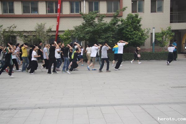 17时10分,演练正式开始,各部门与各个教室、排练场、宿舍的师生做好应急准备。17时20分,第一次警报响起,全校进入震时紧急避险状态,全体人员立即将身体蜷缩,用手或书包护住头部,迅速趴下躲在桌下或内墙角进行应急避震;17时22分,第二次警报响起,各演练地点按照先低层后高层、就近出口、有序疏散的原则进行疏散。师生员工按既定方案在疏散引导人员的指挥下快速有序地撤离到指定疏散地点;17时25分,在各演练点负责人疏散引导下全体师生全部撤离到指定避险地带——学院篮球场;最后,由河北省地震局王宝昆主任为大家进行了案例生动、知识丰富的地震知识报告;18时整,学院党委副书记延凤宇对本次活动做总结后演练圆满结束。