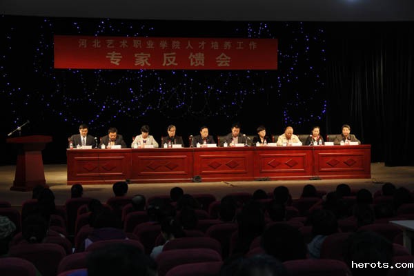 10月19日下午,我院人才培养工作专家反馈会在四楼剧场举行。河北省高等职业院校人才培养工作评估赴我院专家组全体成员出席了反馈会,河北省文化厅艺术处处长庞彦强专程前来参加了反馈会。我院党委书记赵宗更、党委副书记延凤宇、副院长李建锁、副院长刘飞,以及学院全体教职员工、学生代表共300余人参加了会议。反馈会由专家组副组长马东霄教授主持。