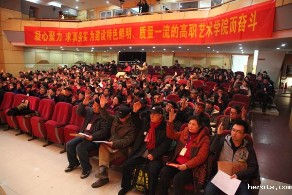 报告首先总结了学院升高职十二年来的主要工作。报告指出,院党委团结带领全体师生员工,坚持特色办学,坚持科学发展,较好地实现了从中专向高职内涵建设的提升与转型,2008年以良好成绩通过教育部人才培养工作水平评估,今年10月通过新一轮人才培养工作评估,学院各项事业取得了全面发展,这突出表现在八个方面:一是办学定位符合发展实际;二是教师队伍素质显著提升;三是专业建设取得重大进展;四是教育教学质量不断提高;五是艺术创作彰显办学实力;六是学生工作呈现新气象;七是办学环境显著改善;八是党的建设取得新成绩。