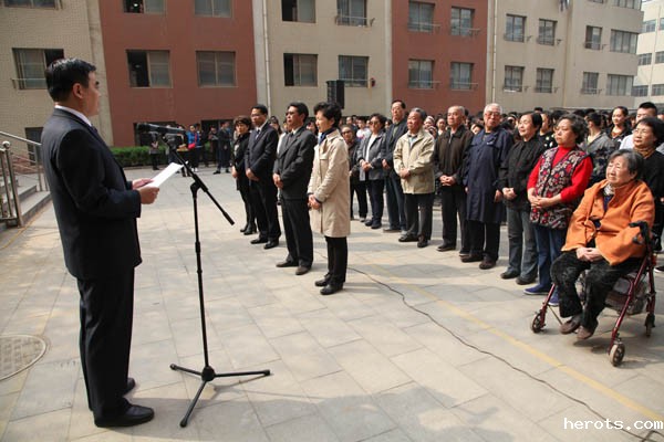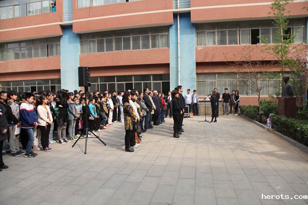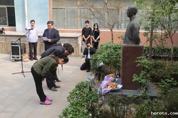 院长庞彦强,宋派传人汪利军,学生代表向铜像敬献鲜花
