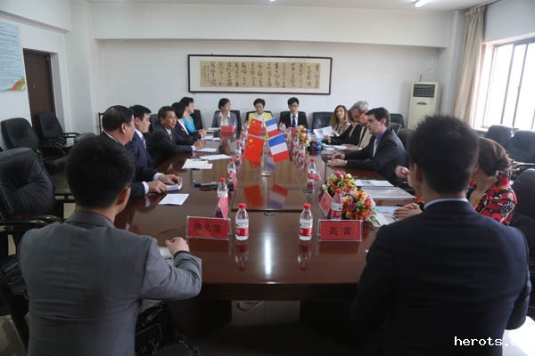 4月16日下午,中法艺术院校交流座谈会在学院九楼会议室举行。法国巴黎歌剧院演奏家、合唱指挥家大卫·占邦,法国国立高等音乐舞蹈学院副院长及指挥系主任让·路易·弗列斯特等来我院开展文化交流的法国国立高等音乐舞蹈学院专家团一行9人,学院党委书记赵宗更、院长庞彦强共同出席了交流座谈会。副院长李建锁主持座谈。教务处、舞蹈系、音乐系、社教部负责人以及多家新闻媒体代表参加了座谈会。