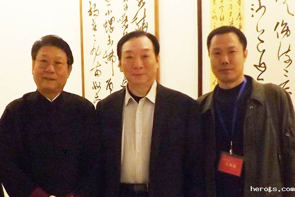魏庆峰老师(右一)在获奖作品前与中国美术馆副馆长杨炳延先生、省书协副主席杜锡瑞先生合影