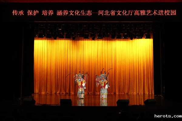 2014年12月4日晚,《燕赵戏韵》进校园讲、演会在河北大学音乐厅准时开始。我院纪委书记张学红,河北大学马克思主义学院党委书记谷峰、校团委副书记李卫森、张小升及河大部分师生代表参加了讲、演会。