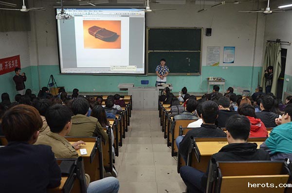 2015年4月16日,美术系装饰艺术设计教研室在学院综合楼阶梯教室举办了“玩‘皮’”皮雕讲座。“维辛工坊”皮雕设计工作室创始人、皮雕设计总监、国家二级皮革技师郑浩冉为广大师生讲授一堂精彩生动的皮雕艺术课。