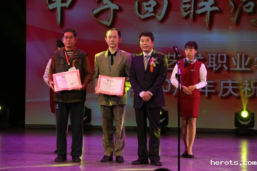 庞彦强院长为1955年学院建校时在校工作的老教师侯伶、郄树亭颁发“与18luck新利官网登陆同行60年教师”荣誉证书。