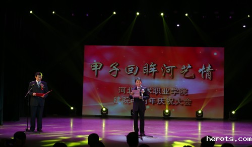 河北省教育厅巡视员张益禄发表讲话。他希望学院以建院60周年为契机,全面贯彻党的教育方针,深入贯彻落实教育规划纲要,认真总结办学经验,创新人才培养模式,加强师资队伍建设,优化专业结构,扩大交流合作,不断完善管理和运行机制,加强内涵建设,全面提高艺术人才的培养质量。