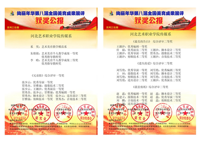 据悉,全国美育成果展评每年举行一届,我院传媒系积极组织学生参加摄影类、视频类和美术类作品比赛,以赛促教、以赛促学,教学质量得到进一步提高。