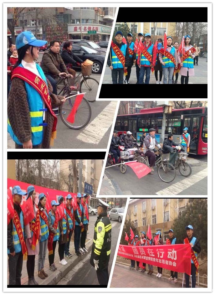 3月12日,石家庄市区各大主要交通路口涌现出了一批可爱的“蓝精灵”,他们是来自包括我院青年志愿者在内的二十多所高校的青年学生,正在开展“文明交通行”志愿服务。