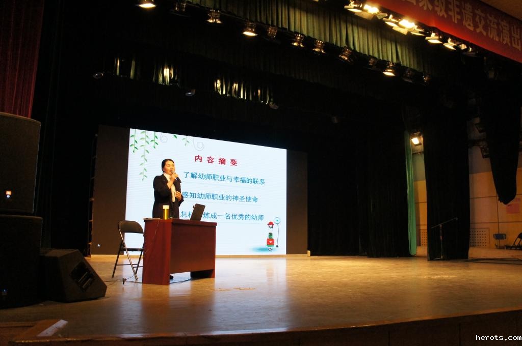 10月27号晚,在学院四楼剧场,河北省直机关第三幼儿园园长李艳为大家做了主题为《真心爱上幼教,你就走上了一条幸福之路》的讲座。她讲到,一名优秀的幼儿教师既要修炼教师的形象,又要锤炼教师的专业——打造软实力、强化硬实力,更要理解作为幼儿教师的幸福到底源自哪里,那就是源自内心的爱,真心爱上幼教,爱每一个孩子,用心聆听每一朵花开的声音,相信大家都能成为一名幸福而优秀的幼儿教师。同学们都感悟颇深,在自己的内心深处受到了鼓舞和启迪,对自己未来的职业成长道路有了更加清晰的认识。