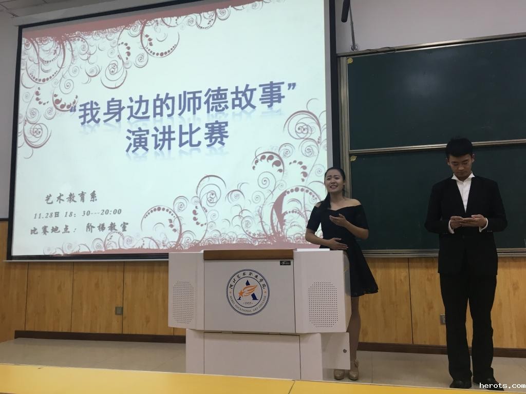 2016年11月28日,艺术教育系在综合楼阶梯教室举行了“我身边的师德故事”演讲比赛。教务处、艺术教育系老师和同学们聆听了演讲,在这个冬天一起感怀师恩,传递温暖。
