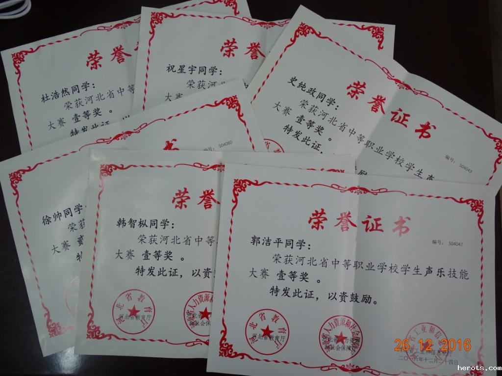 12月22日-24日,在河北省中等职业学校艺术类技能大赛中,学院音乐系王钧宝和王亮老师荣获河北省中等职业学校学生技能比赛优秀指导教师奖;12名学生分获器乐组和声乐组各奖项,其中器乐组王卓、孟小桐、张天博、张慧喆荣获一等奖,杨明明、单星喆荣获二等奖;声乐组杜浩然、祝星宇、韩智枞、史纯政、郭洁平荣获一等奖,徐帅荣获二等奖;器乐组和声乐组分获艺术类团体一等奖。