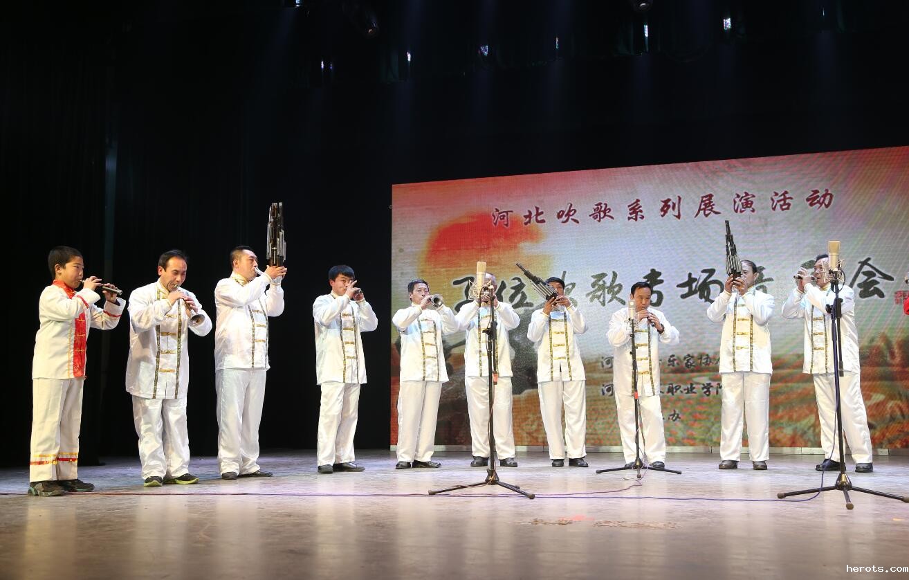 欢快、激情的合奏《脱布衫》拉开了演出序幕,该舞曲表现了劳动人民干劲十足的一个生活情景。子位吹歌最具有代表性的曲牌《放驴》将几代艺人长期生活实践形成的演奏吹艺表达的淋漓尽致,合奏《小二番》、《金字经五圣佛斗鹌鹑》、《八仙庆寿》轮番上阵,引得阵阵掌声。张志军老师的管子独奏《大公鸡》,张占民老师的唢呐咔戏《京剧联奏》、唢呐独奏《河北梆子大登殿》、管子独奏《江河水》、《哈哈腔》充分展现了民间艺术家的精湛演奏技巧,激昂热烈的旋律和充满趣味的艺术表演深深地感染了现场观众,将演出推向高潮。在合奏《打枣》欢快优美的旋律中,演出落下帷幕。