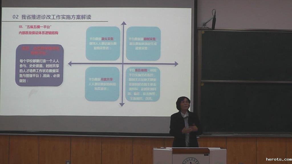 培训会上,刘彩琴教授从三个方面对“诊断与改进”进行了解读。刘教授首先从政策背景、现实需要两方面对为什么要进行“诊改”进行了详细叙述;其次,她围绕我省推进诊改工作实施方案从“诊改”的内涵、任务、基本程序、各方职责、纪律与监督等方面进行解答,并通过试点院校典型做法就如何开展此项工作进行了全面辅导。