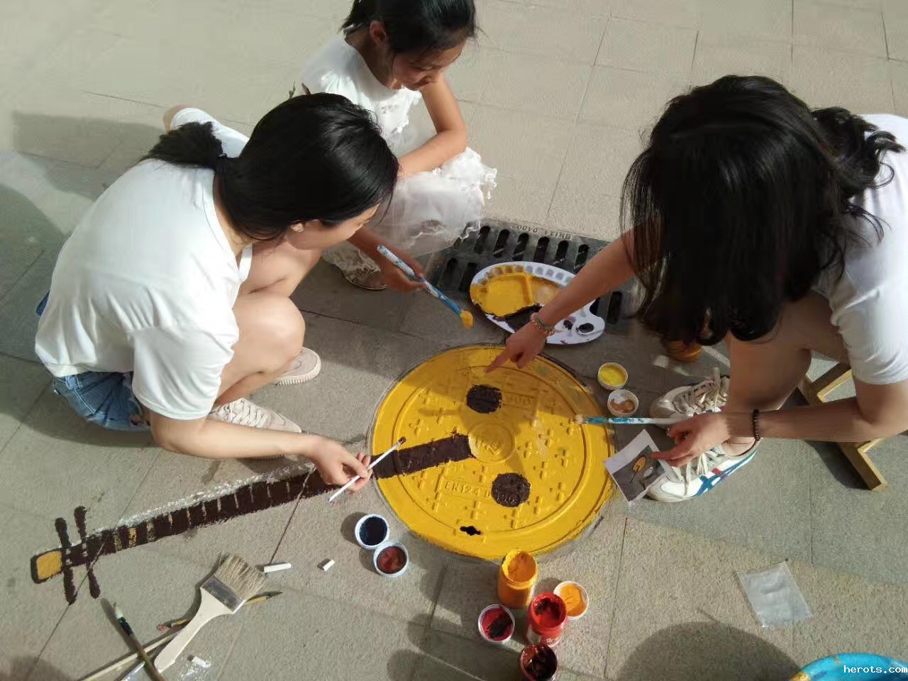 揭牌仪式结束后,美术教育学生和石家庄二中第一实验小学四年级同学手拉手合作彩绘了校园井盖,美化了校园环境。双方还就进一步联合教研和深度合作进行了探讨,达成共建共赢合作方案。