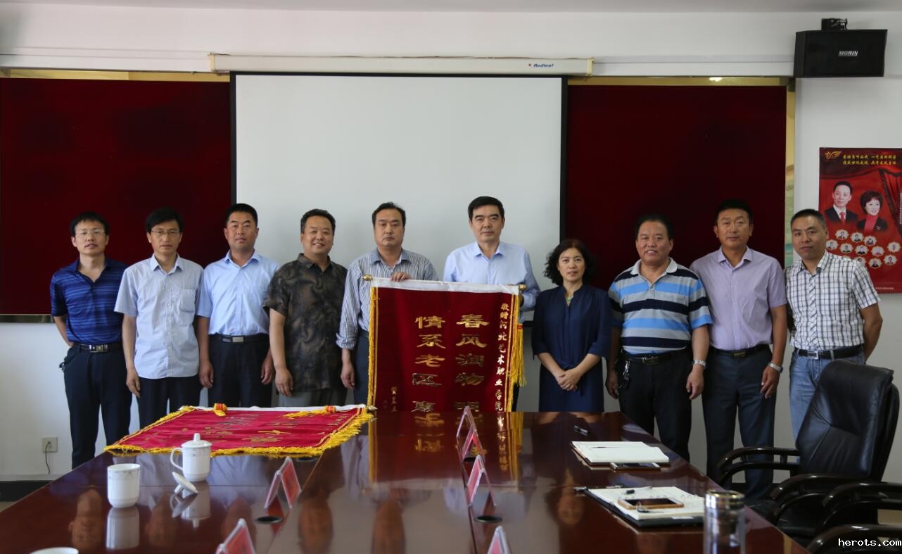 2017年5月25日,赞皇县文广新局局长时占鳌一行三人来到我院,将一面印有“春风润物明德育才,情系老区惠泽山乡”的大红锦旗送到学院党委书记赵宗更手中,深切地表达了对我院在赞皇县进行文化扶贫工作的感激之情。我院领导赵宗更书记、延凤宇副书记以及组织人事处、党政办公室、戏剧系相关负责人热情接待时占鳌局长一行。
