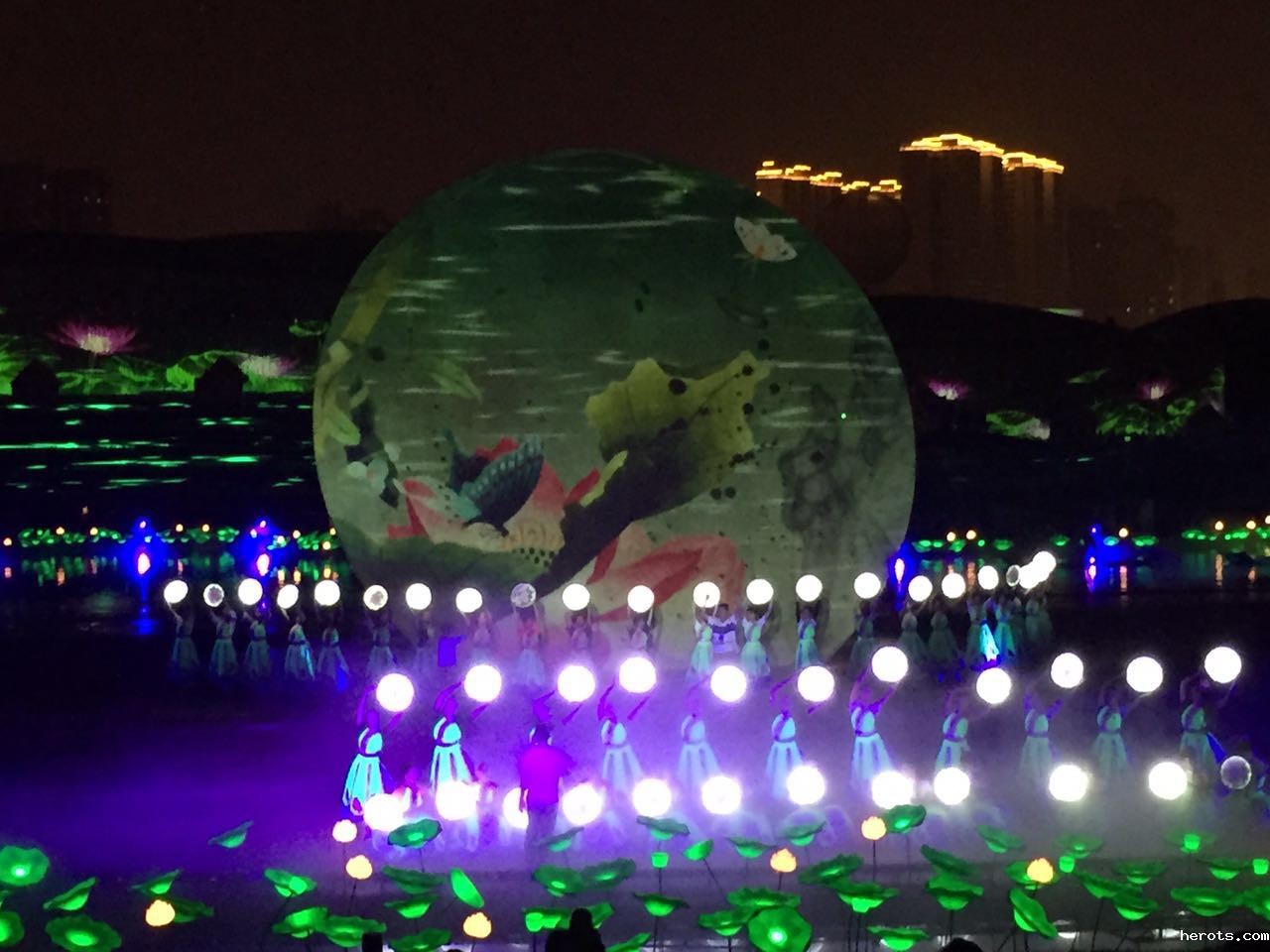经过六天的排练、联排、彩排,晚会于5月21日在长沙市芙蓉区浏阳河边上的外景地正式演出,并获得圆满成功。晚会中,我院师生参演的第一幕“天下大禾”与第三幕“天地和声”结合了高科技声光电和舞台的旋转推拉威亚,以及大型动漫式LED运用等技术手段,表现了良好专业水平,开阔了眼界,积累了舞台表演经验。