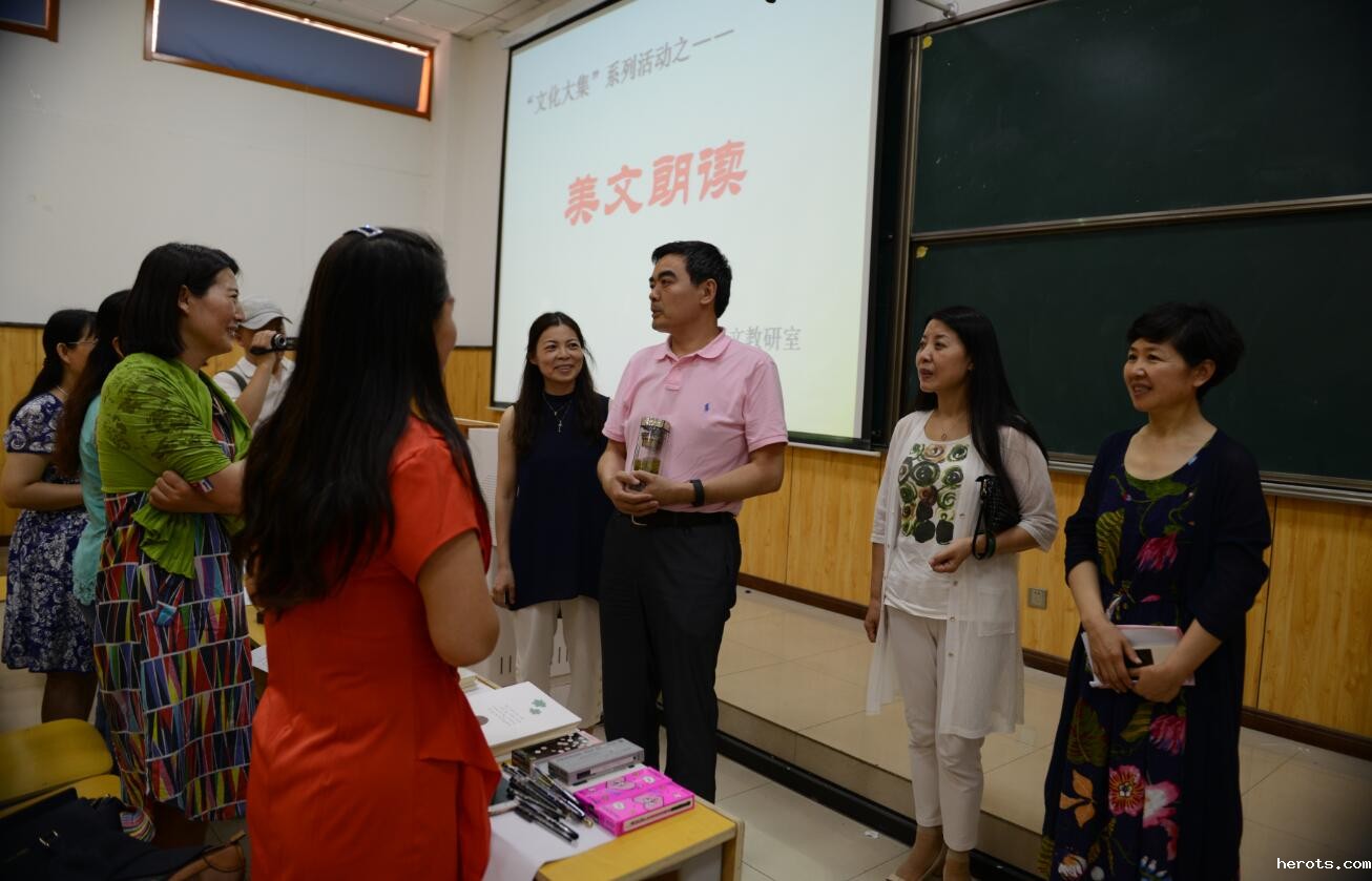 语文教研室在“文化大集”上精心打造了“美文朗读”活动,学生可选择自己喜欢的一篇美文或片段进行朗读,他们那饱含感情的声音感动了听众和评委,也感动了自己。