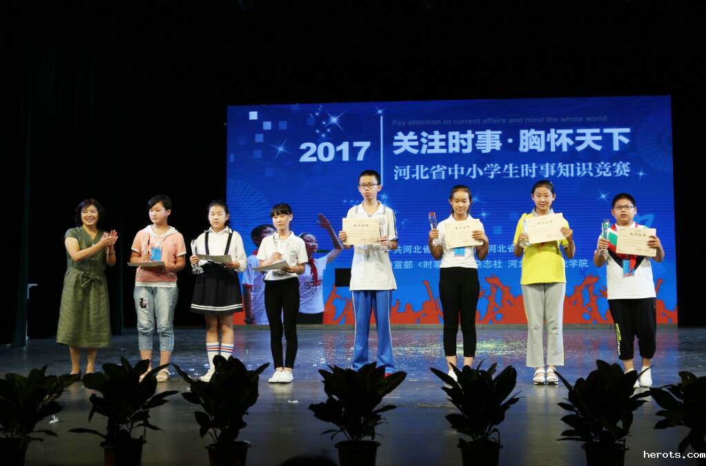 6月15-16日,2017年河北省中小学生“关注时事·胸怀天下”时事知识竞赛在我院四楼剧场举行。本次比赛由省委教育工委、省教育厅主办,我院和中宣部《时事报告》杂志社河北站共同承办。中宣部《时事报告》杂志社总编张旭、省教育厅王廷山副厅长、思政体卫处杨立华处长、副处长艾冬梅、德育研究中心副主任蔡杭州、省新华书店公司党委书记、总经理于惠丰、省教育科学研究所所长马振行、中宣部《时事报告》杂志社河北站站长薛婷等参加。我院赵宗更书记、庞彦强院长、延凤宇副书记、刘志欣副院长等参加活动。