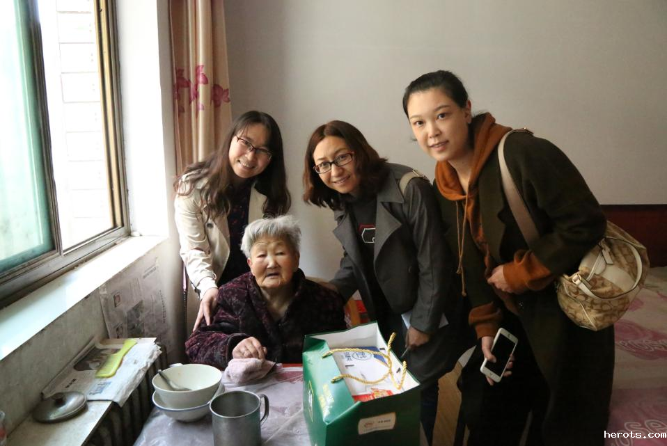 拜访完范枝枝后,志愿者们依次去探望其余三位抗战老妈妈,给她们送去了生活日用品和慰问金,并祝老妈妈生活幸福,健康长寿,老人们笑的像孩子般快乐。志愿者同老人们在谈心聊天中,了解到“抗战老妈妈”在抗日战争中为国家和民族做出的贡献。大家深受教育,得到一次精神上的洗礼。