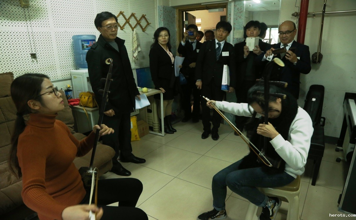 座谈会后,访问团参观了校园和课堂,观看了我院音乐系二胡、古筝、琵琶课程以及舞蹈系基训、芭蕾、国标舞课程,并来到18luck新利官网登陆时空展厅参观了我院美术系举办的油画展。此次访问活动进一步增进了中日双方在艺术教育领域的了解与交流,为共同推进中日两国文化友好发展打下坚实基础。