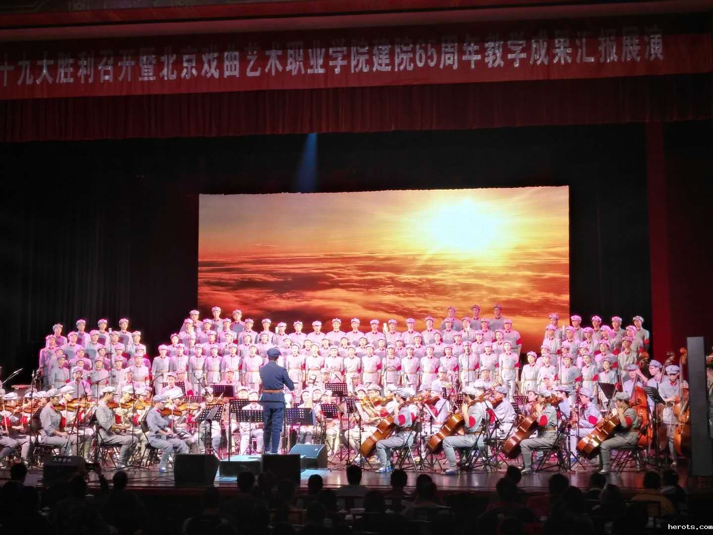 2017年11月19日晚,北京长安大戏院剧场内掌声、喝彩声不断,我院音乐系41名师生与北京戏曲艺术职业学院、天津艺术职业学院师生再次共同唱响红色经典史诗大型声乐套曲《长征组歌》——红军不怕远征难,为北京戏曲艺术职业学院建校65周年教学成果汇报展演划上了圆满的句号。