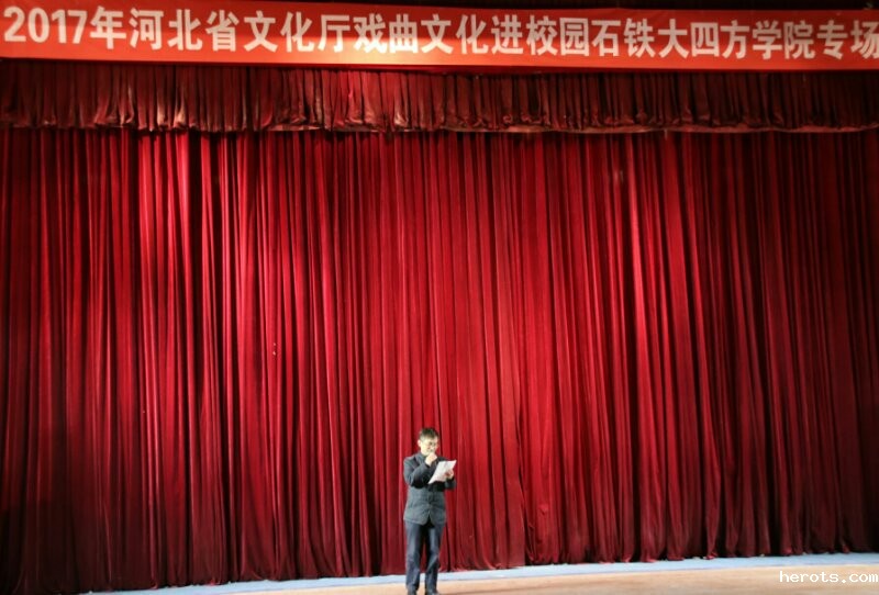 响应省委宣传部、省文化厅戏曲文化进校园的号召,2017年12月5日晚,国家艺术基金项目——河北梆子《窦娥冤》青年表演人才的阶段性汇报演出在石家庄铁道大学四方学院拉开帷幕。