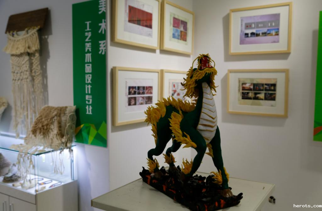 我院历时三个月准备此次展会,共参与师生百余人;展出了学院美术系舞台艺术设计与制作、环境艺术设计、视觉传播设计与制作、工艺美术品设计、美术教育、文物修复与保护6个专业的优秀学生作品100余件。展品从古到今,既有文物修复、非遗传承,也有现代文化创意;展品有大有小,最大的清西陵模型2.4*1.2米,气势恢宏,最小的手工艺品仅有0.1米。美术系还组织学生们参加了第四届河北省文化创意设计大赛、第五届河北省特色工艺美术精品大赛。
