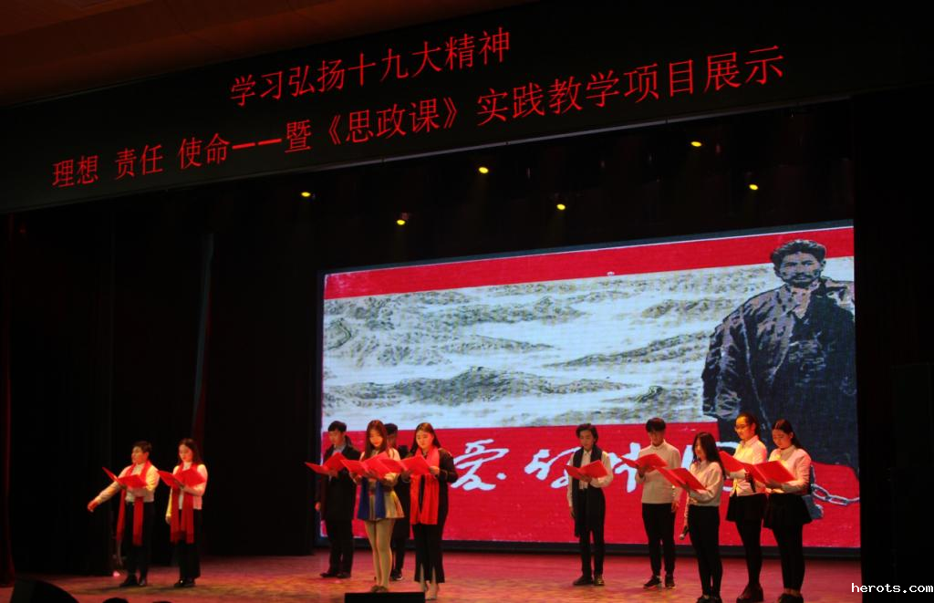 此次思政教学实践活动以“理想ž责任ž使命”为主题,演出节目从学院七个系2017级大专生中经过三轮选拔中脱颖而出,思政教师结合思政课教材内容,通过活泼、新颖、生动的文艺作品展示,把思政理论课与艺术特色相融合,让理论学习贴近社会生活的实际和大学生思想实际,让同学们在轻松、可感、易参与的氛围里受到了一次深刻的思想洗礼。