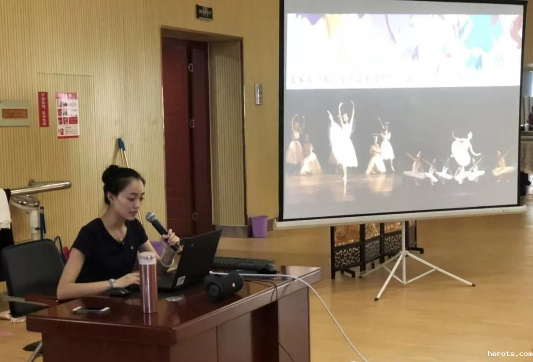 5月22日,舞蹈教师杨丽以《芭蕾训练中擦地动作的训练价值及应用讲解》题进行了公开课,深入讲解了芭蕾艺术的历史背景、文化起源、发展演变等内容。课堂中她以擦地训练为基础,依次对地面训练、把上训练、中间训练、跳跃训练等训练部分进行了细致、专业地讲解与示范,并在讲授芭蕾训练方法的同时,与大家分享了一些科学、高效、实用的辅助训练方法。最后,杨丽老师以芭蕾舞变奏——《艾斯米拉达》作为足尖成果进行现场展示。