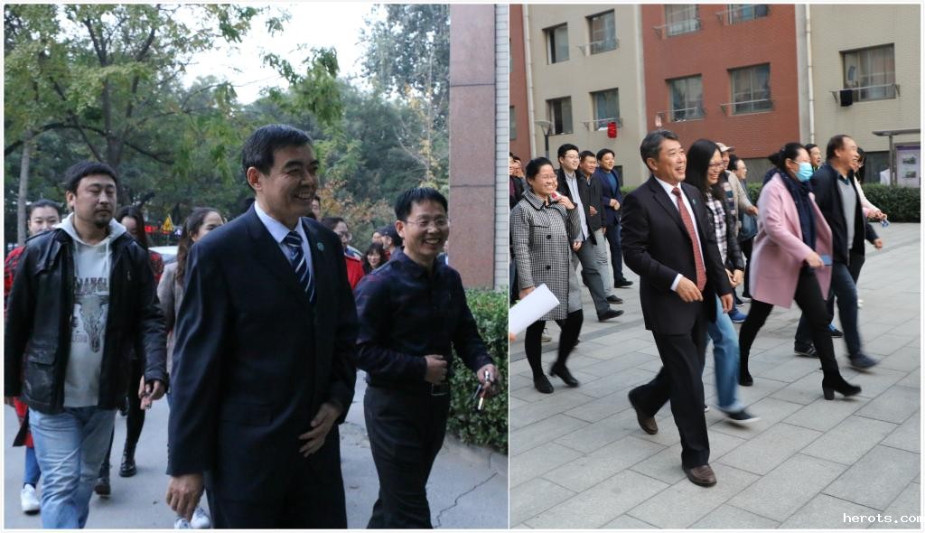 | 刚送走外宾的赵宗更书记与庞彦强院长立即参加到健步走活动中来 |