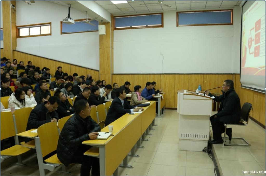 2018年12月26日下午,在学院阶梯教室召开2018年党员干部廉政教育大会。大会由省文化和旅游厅党组成员,省纪委监委驻省文化和旅游厅纪检监察组组长张军田主讲,党委书记赵宗更主持会议并讲话。纪委书记张学红、副院长刘志欣,全体党员,副科级以上干部参加了会议。