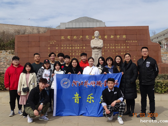 下午,音乐系学生来到了位于平山县西岗村《曹火星纪念馆》,了解了革命歌曲《没有共产党就没有新中国》诞生的时代背景、创作过程以及深远影响。在曹火星雕塑前集体演唱了这首经典曲目。