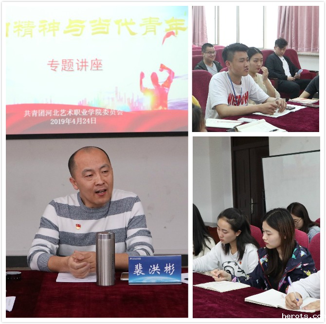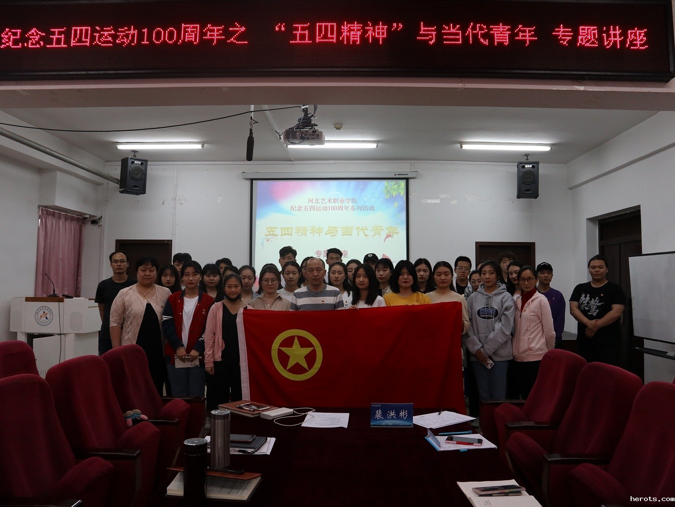 在随后进行的座谈会上,裴老师就“五四”精神与同学们进一步展开了讨论,同学们积极发言,各抒己见,表达自己对“五四”精神当代意义的理解。美术系2017级环艺班团支书郭政浩认为:重温一百年前的历史,是对我们当代青年的一种鞭策,我们要以“五四”精神为指引,继续传承“五四”精神,体现我们的担当。舞蹈系2018级国标舞班班长牛奕霏说:与前辈振臂一挥的热情相比,我们更应该踏实勤奋,练好专业,提高综合素质,立志成为各行各业的翘楚,在新时代中建功立业。传媒系入团积极分子王浩哲表示:一百年前的前辈事迹深深的激励着国人,“新青年”们为了国家的前途命运不惜牺牲自己的性命,我们要将这种爱国和担当精神,延伸到平时的生活和学习中,将祖国命运和自己的发展相结合,为祖国的繁荣昌盛贡献自己的一份力量。