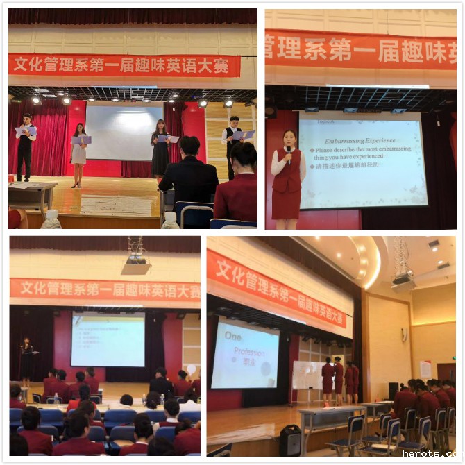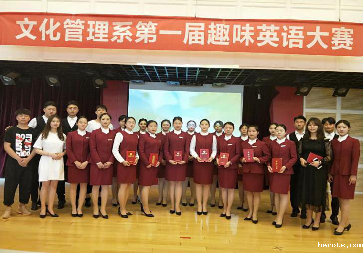 春红落尽,夏木成荫,在5月15日美好的初夏午后,我院文化管理系在南校区成功举办了全系首届趣味英语大赛(FunEnglishCompetition)。文化管理系18级学生作为参赛者参加比赛,系副主任李洁、乘务教研室主任谷海燕、文化产业管理教研室主任刘静及全系教师作为嘉宾评委出席活动。