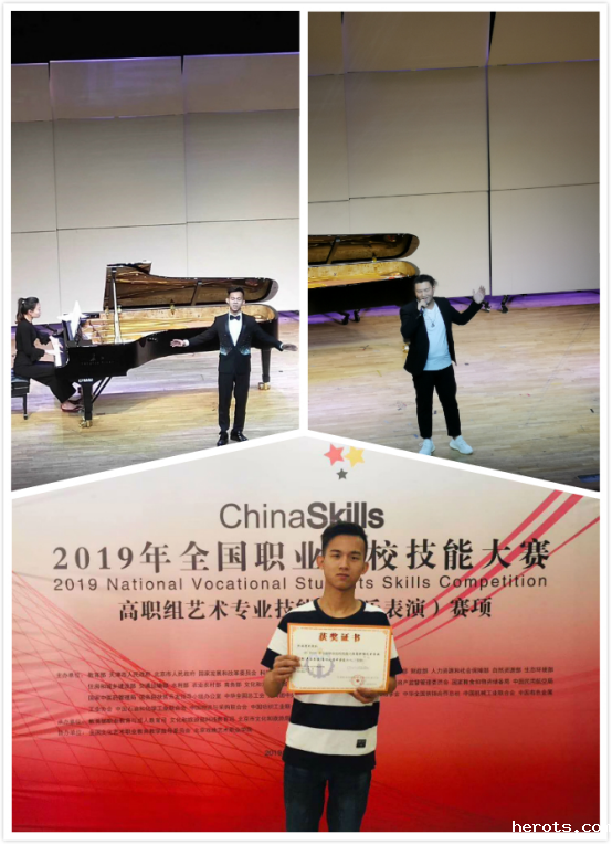 2019年全国职业院校技能大赛高职组艺术专业技能(声乐表演)赛项于5月26日至31日在北京戏曲艺术职业学院举行,我院音乐系2名学子参赛,其中民族唱法选手华奇获得三等奖。