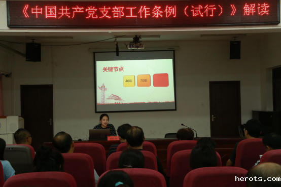 郑时雨老师对《中国共产党支部工作条例(试行)》(以下简称《条例》)进行了细致的讲解。她从《条例》出台的背景和重大意义,党支部的地位职责、组织设置、基本任务、组织生活、工作机制、支委会建设、领导保障,如何贯彻落实《条例》等方面,对《条例》作了系统阐释和深入解读。她指出《条例》是我党历史上第一部关于党支部工作的基础主干法规,是新时代党支部建设的基本遵循。基层党支部要以提升组织力为重点,突出政治功能,健全基层组织,优化组织设置,创新活动方式,全面提高新时代党支部建设质量。
