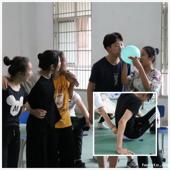 “合力吹气球”环节,每个小组的六名成员协调分工,分别扮演嘴巴、双手、屁股、双脚,通过不同部位的配合,合力坐破气球。同学们在比赛中不断调整策略,积极讨论感受与收获。