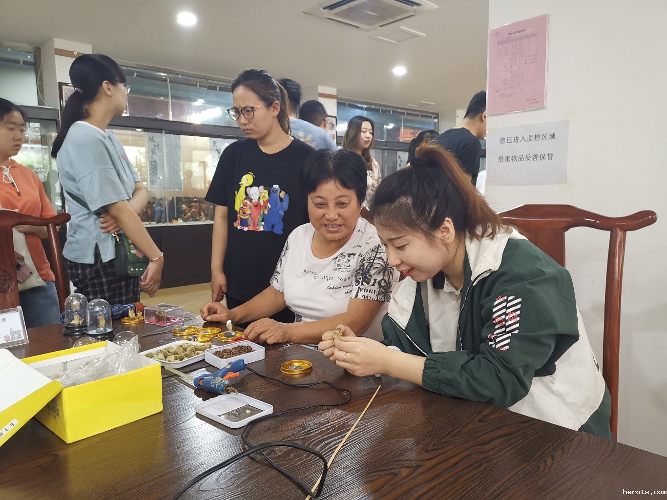 国翠非遗交流中心是我院校外实践基地之一,活动期间,美术系100多名学子由教师带队进行现场参观,认真学习观摩了非遗传承人的面塑、剪纸、脸谱、葫芦烙画、棕编、绳编、毛猴制作工艺、墩绣、木雕、民间戏法等项目,零距离感受中华传统文化的魅力。学子们通过学习非遗项目制作工艺,将所学专业与传统文化相结合,力求创作出更多的文化创意产品,使非遗文化真正融入现实生活。