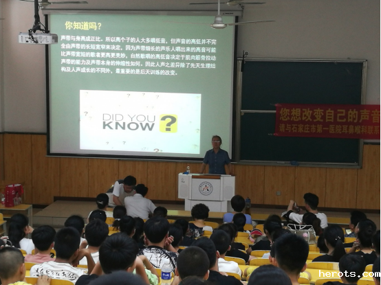 2019年6月12日下午,在我院戏剧系党支部、团总支的积极组织下,18luck新利官网登陆邀请到石家庄市第一医院专家汪贺媛(耳鼻喉科主任医师)、薛静(耳鼻咽喉头颈外科主任医师)、赵辉明(耳鼻咽喉头颈外科副主任医师)三位老师,在综合楼阶梯教室为戏剧系全体师生进行了一场生动的嗓音知识公益讲座。