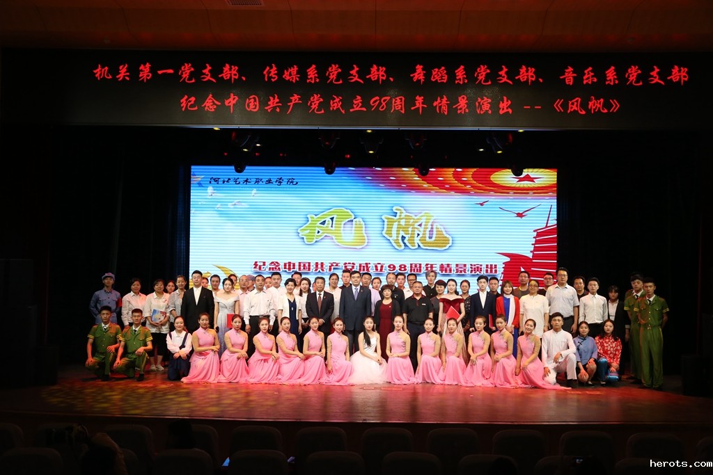 为纪念党的98岁华诞,回顾党的光辉历程,讴歌党的丰功伟绩,同时作为“不忘初心、牢记使命”主题教育的重要内容之一,6月17日下午,由我院机关第一党支部、传媒系党支部、舞蹈系党支部、音乐系党支部等联合创排的舞台情景演出《风帆》在四楼剧场隆重举办。学院党委书记赵宗更、院长庞彦强、党委副书记延凤宇、副院长刘飞、纪委书记张学红莅临现场,四个党支部的80余名师生同台演出,350余名学生共同观看。