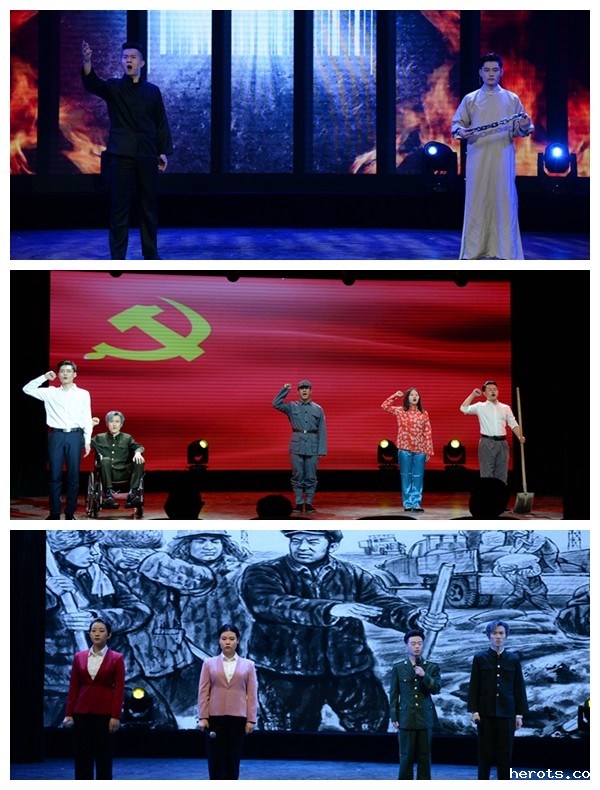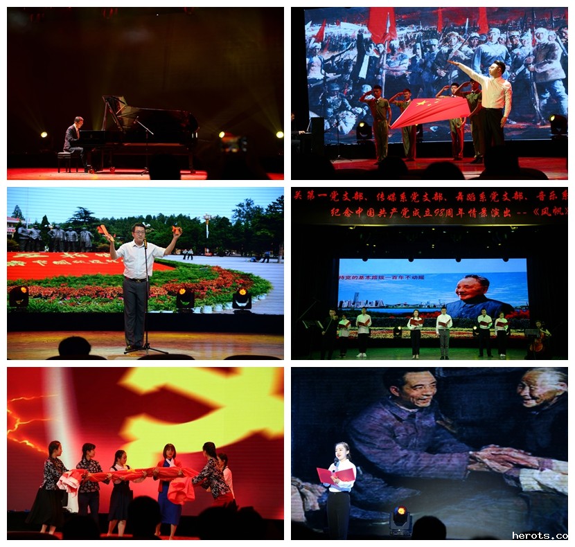 此次活动准备精心、创排精良、演出丰富感人。内容以建党以来一直到新时代的风雨历程为时间轴,以诵读、讲述、舞蹈、声乐、器乐、曲艺等艺术类型相组合,主题鲜明,气氛热烈。演出以旁白《征程》及钢琴独奏《东方红》拉开序幕,《从石库门到天安门》《西江月·井岗山》《长征组歌》《新中国从这里走来等》《把一切献给党》等节目,歌颂了党的光辉发展历程,现场观众倍感振奋;《刑场上的婚礼》《囚歌》《我的自白书》等节目表达了对革命先烈的崇敬和缅怀,观众深受感动;《等待》则是一场跨越时空的情景演绎,讲述了“两弹一星”邓稼先接受国家安排秘密研制原子弹,和妻子许鹿希聚少离多的可歌可泣的爱情故事,感人至深,场下观众多次落泪。活动尾声,学院领导上台与演员集体诵读原创长诗《风帆》,将演出氛围再次推向高潮。