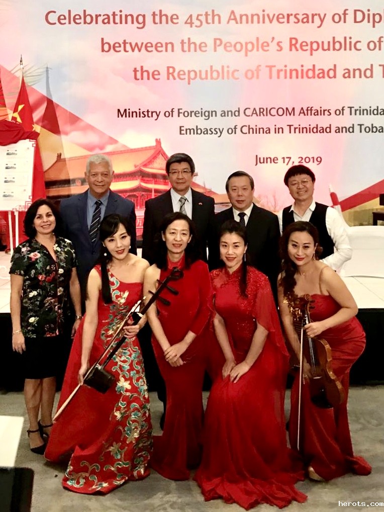 当地时间6月17日至18日,受中国驻特立尼达和多巴哥大使馆委托,应特多文化部邀请,河北文化旅游代表团一行赴特多参加了中特建交45周年纪念活动。17日晚,在特多首都西班牙港举办的庆祝中特建交45周年招待会上,河北“燕赵弦韵”乐团现场演奏了中国传统民乐和特多当地乐曲,受到热烈欢迎。18日晚,河北“燕赵弦韵”乐团与特多国家钢鼓交响乐团在特多国家表演艺术中心联合举办了纪念中特建交45周年专场演出活动,特多政要、驻特使团及各界人士应邀出席,1200座的国家表演艺术中心座无虚席,活动取得圆满成功。特别是最后由“燕赵弦韵”乐团和特多钢鼓交响乐团联合演奏的《丰收渔歌》《白帝城幻想曲》《战马奔腾》将演出活动推向高潮,中特双方演奏家的倾情演绎以及与现场观众的热烈互动,引发了阵阵掌声和欢呼声,演出一直在欢快祥和的气氛中进行。