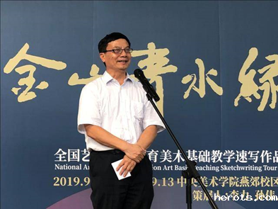 孙若风司长在发言中指出,中国艺术职业教育学会美术与设计专业委员会一年来对弘扬中华美育精神所做的工作值得肯定,希望今后专委会再接再厉,促进全国艺术职业院校在专业领域的交流与合作,促进教育教学和学术水平的进一步提升。学会美术与设计专委会主任孙伟在致辞中表示,本次活动在喜迎中华人民共和国成立70周年之际举行,以“绿水青山、金色乡愁”的家国情怀为主题,既是一场美术基础教育领域技艺技法实力的交流与展示,更是美术与设计教育从业者以画笔描绘伟大祖国各地区自然与人文美好画卷的抒情表达。这次活动不仅要集结美育工作者的家国情怀,更要通过持续巡展将这种情怀传播到祖国各地。