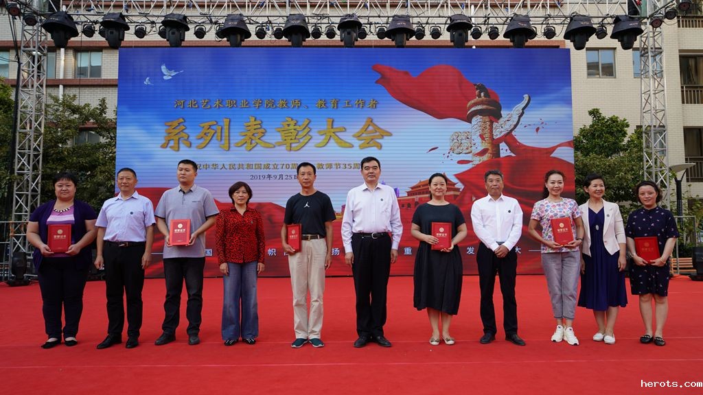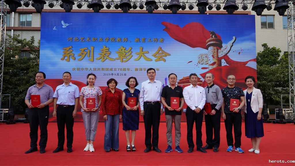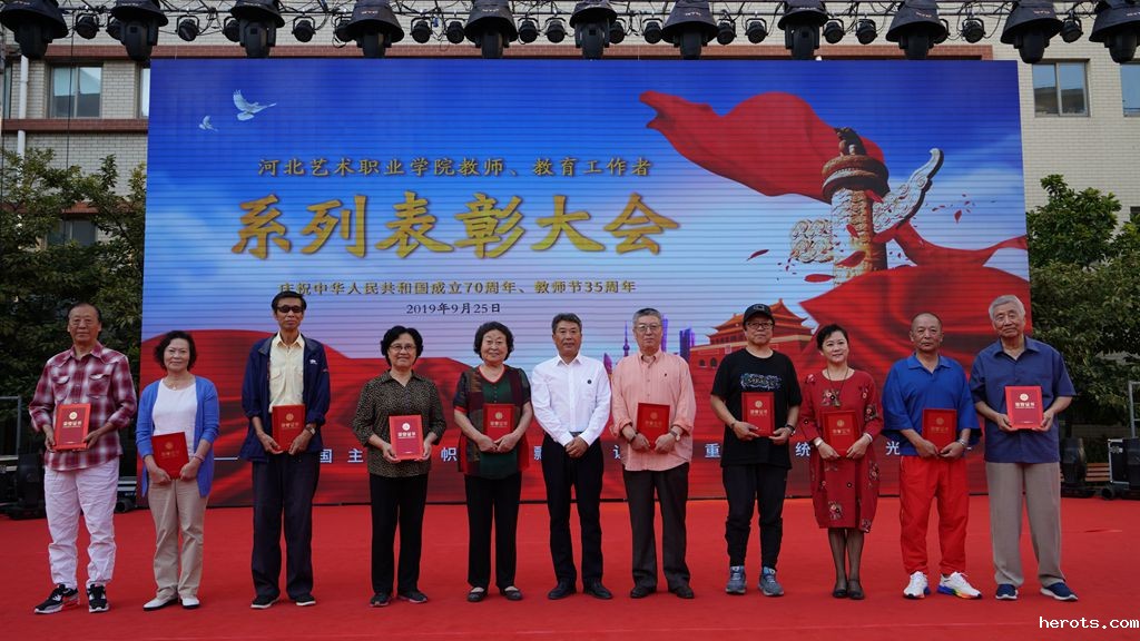 神州歌盛世,举国庆华诞!2019年9月25日下午,学院隆重召开“让爱国主义旗帜高高飘扬 让尊师重教传统发扬光大——庆祝中华人民共和国成立70周年、教师节35周年暨18luck快乐彩教师、教育工作者系列表彰大会”。学院党委书记赵宗更、院长庞彦强、党委副书记延凤宇、纪委书记张学红、副院长刘志欣出席活动并为受表彰教师、教育工作者颁发证书,全院老、中、青三代教师、教育工作者代表及2019级全体新生参加表彰大会。