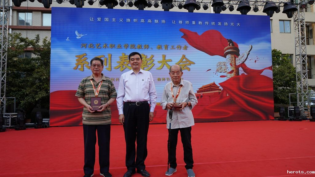 离休老干部是学院宝贵的财富,他们中很多人在建国前就参加工作,与新中国共成长,一直在为新中国艺术教育事业默默付出。目前,学院健在的离休老干部有14位,他们是马桂琴、王凯、王桂芸、邢春祯、吕英、孙殿仲、李少奎、李建同、宋淑芬、金雪芹、郄树亭、房养数、侯伶、阎秀珍。本次大会上,孙殿仲老师、郄树亭老师作为建国前参加工作的离休老干部代表出席了表彰仪式。